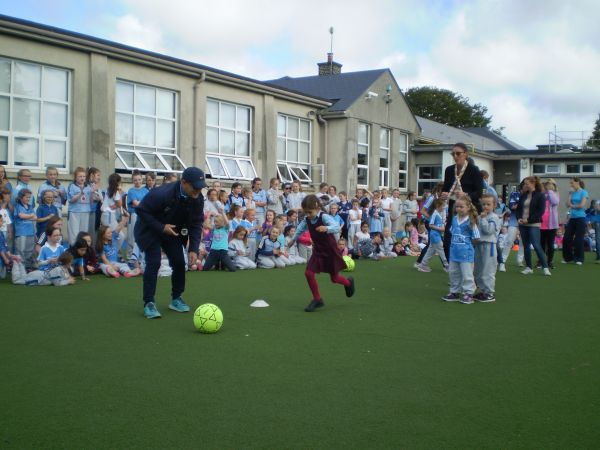 Children from each of the classes took on the teachers in a penalty shoot-out. Noel, our care-taker, was goal-keeper and Ronnie, our GAA expert, was referee! The pupils managed to beat the teachers on the day with Ruby W from Ms. Devilly's class winning overall champion. Well done to all! Follow this link to view more photographs https://www.flickr.com/photos/145998731@N04/albums/72157674269179351